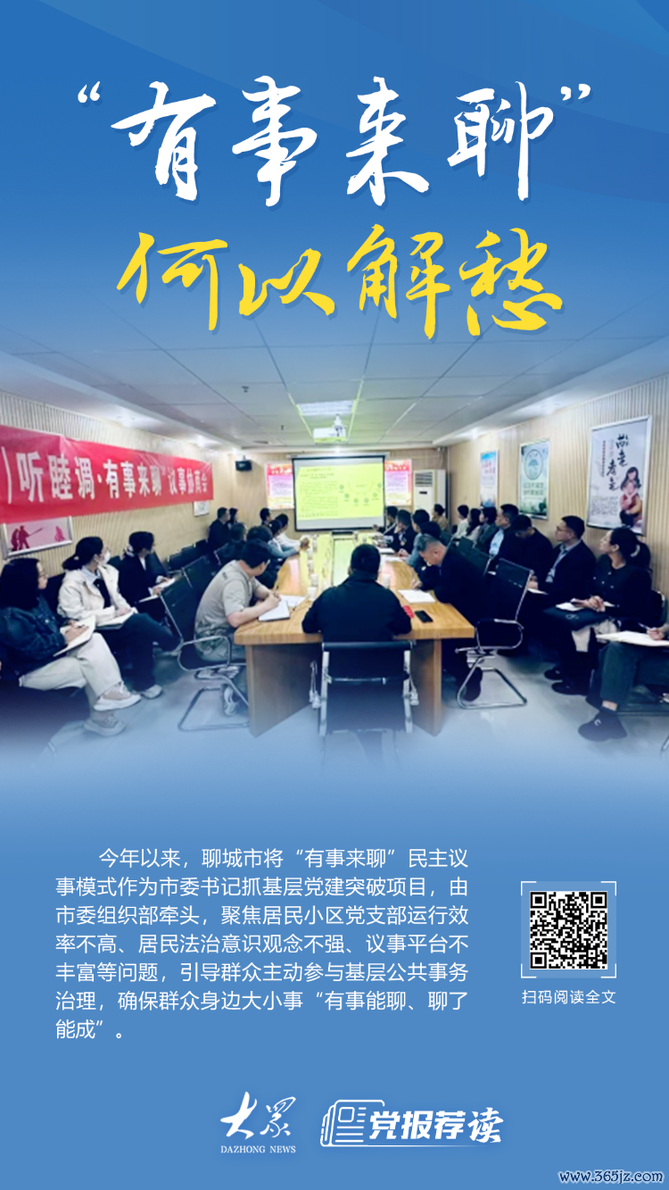 聊城以城市小区全球收益乱、矛盾多、泊车难等大众身边的“要津事”、“关注事”为切入点,常态化组织“有事来聊”民主议事,把大众盼的事变成党组织干的事,最终变成大众现象的事。