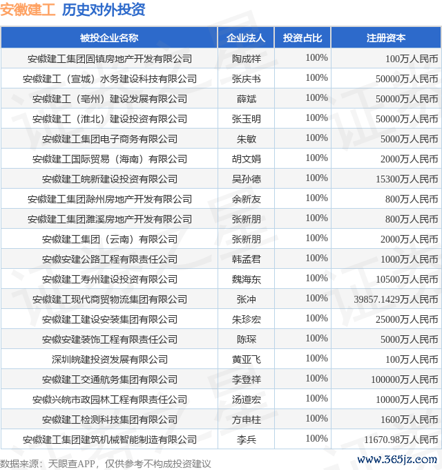 本站音问,凭据天眼查APP露出,安徽建工(600502.SH)新增所有对外投资事件,被投资公司为安徽建工集团(重庆荣昌)高速公路有限公司,法定代表东说念主洪杰,投资占比为61%。该公司从事土木匠程开发业,注册成本为20000万东说念主民币。现在开云体育,安徽建工共存在对外投资128项,投资占比前20的情势见下表: